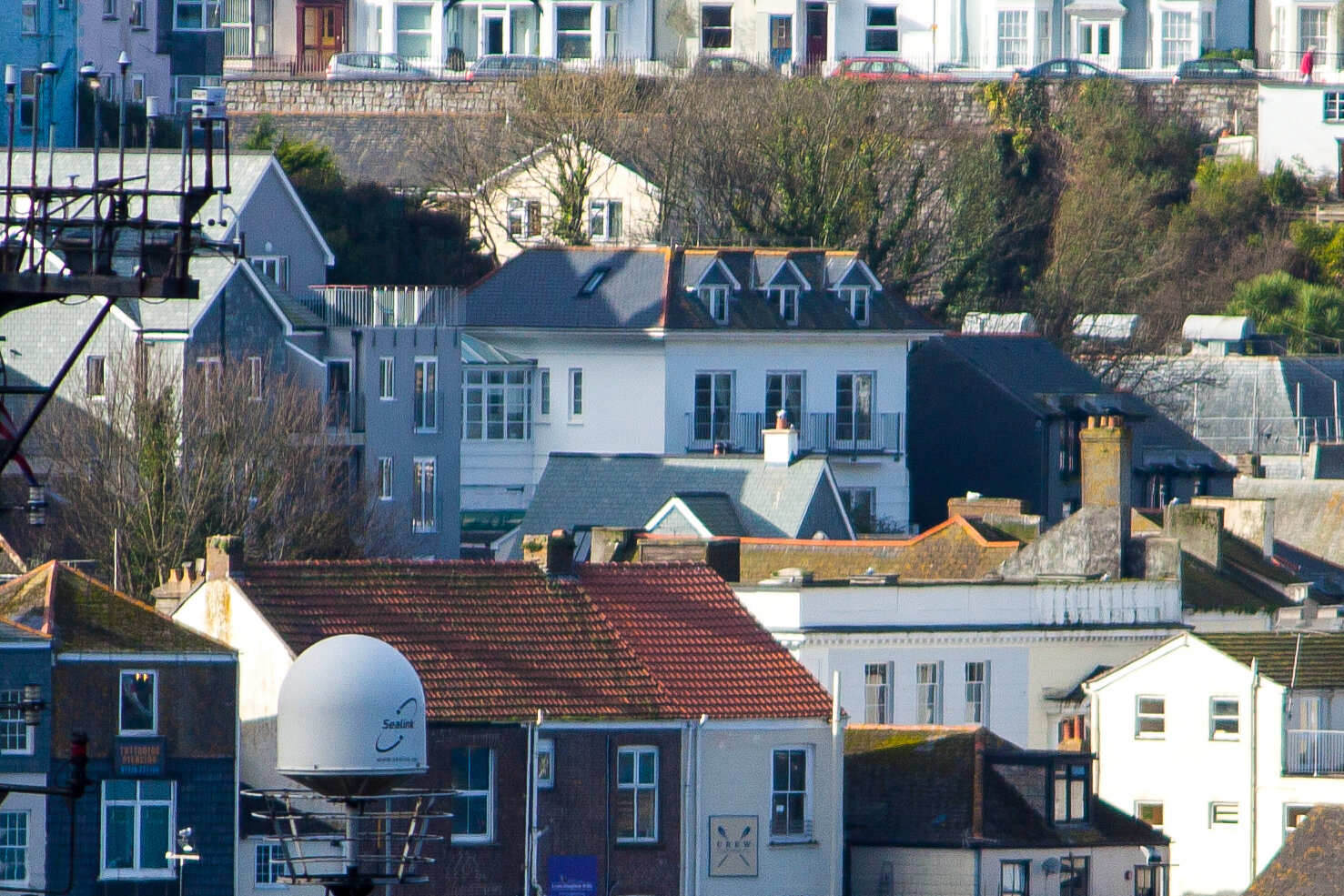 This bespoke timber-frame 3-bedroom house is built on a precipitous site in central Falmouth. It takes full advantage of its steep, sloping nature to provide parking at ground floor level and exploit the spectacular views over the harbour and Carrick Roads from the first floor. The garden at the rear opens from the double-height galleried dining room and adjacent conservatory.